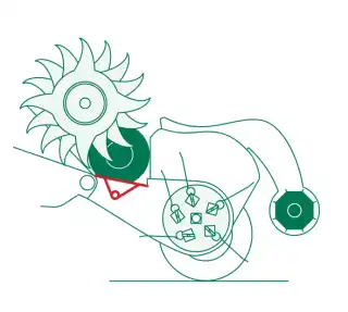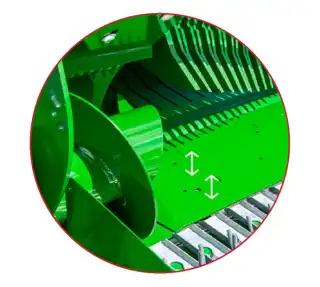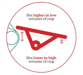 Den adaptive inntaksplaten sitter høyere i lave volumer av avling og kan justeres til en lavere posisjon for større volumer av avling.