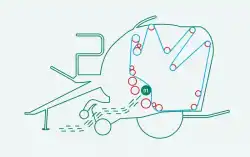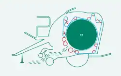 Når ballen dannes inne i kammeret, overtar hydraulikken spenningen av beltet(e) fra de fire store fjærene. To hydrauliske sylindere styrer spenningen på kammerbeltet(e) når ballen dannes inne i kammeret. |