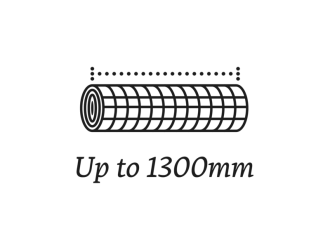 Opp til 1300 mm Kapasitet til å ta ruller med nettfolie opp til 1300 mm i bredden og 4500m i lengden. |