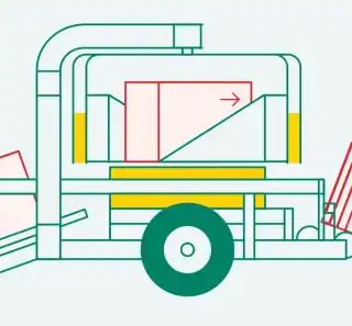 Ettersom en balle losses på baksiden av maskinen, blir neste ball transportert fra fronten av maskinen til transportøren. Transportøren kan også brukes til å plukke
