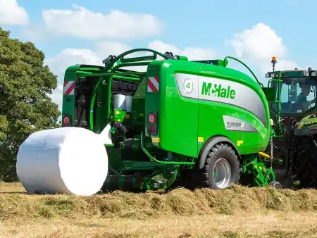 McHale Fusion 4 Plus er en helautomatisk integrert kombipresse som kan brukes med både nett eller breiplast, for optimal balleform og balletetthet uansett avlingstype. Breiplast-systemet bidrar til bedre ensilasjekvalitet og lettere håndtering av ballene ved fôring. Fusion 4 Plus er utstyrt med et patentert balleoverføringssystem og en vertikal pakkering. Disse to McHale-patentene gir maksimal ytelse samtidig som den holder maskinen kort og kompakt med en lengde på 5,8 meter. Maskinen er utstyrt med 25 kniver og Isobus.