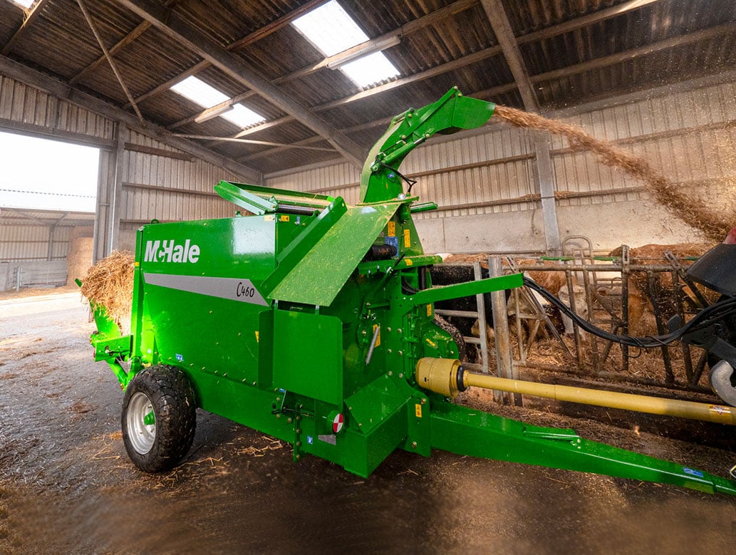 McHale C4-serien av maskiner er ideelle maskiner for fôring av ensilasje og høy, den doble girkassen gjør at ensilasje og høy kan fordeles akkurat der det ønskes. Hastigheten på transportbåndet er proporsjonalt kontrollert slik at operatøren kan justere matehastigheten avhengig av materialtettheten og sammensetningen.